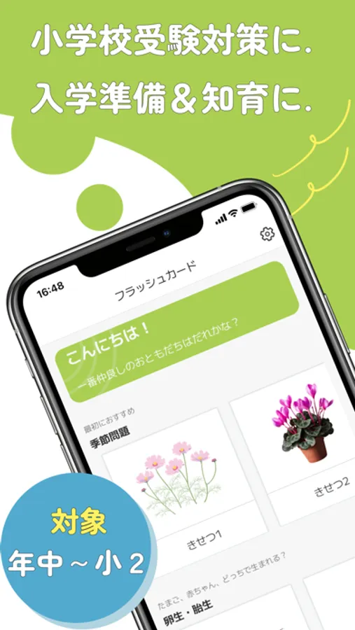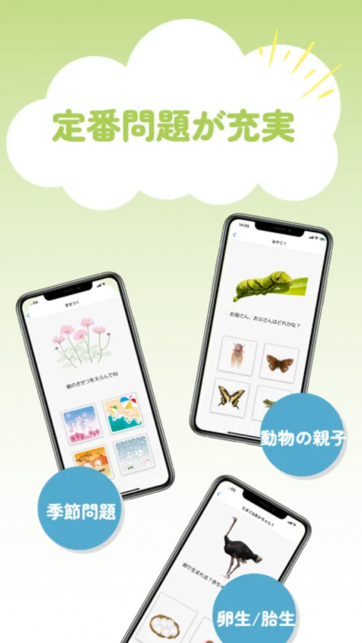 小学校受験のペーパー対策や、小学校入学準備用のワークブックをなかなかやりたがらないお子様も、カラフルなイラストと可愛いキャラクターたちが励ましてくれることで楽しく続けられる知育アプリです。