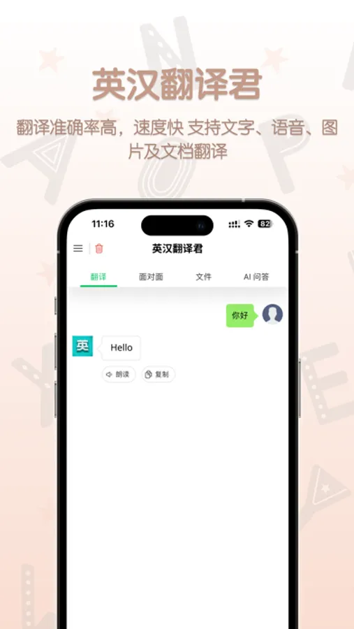 一款专业的英汉机器翻译、文字翻译应用。 语音翻译、图片翻译、拍照翻译、面对面翻译、文件翻译 (Word, PDF, Excel, Txt) 翻译。