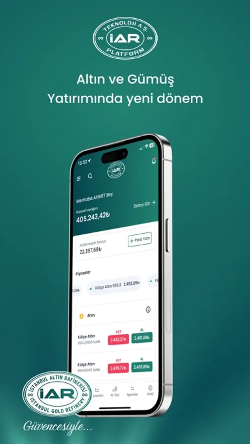 IARPlatform, altın ve gümüş alım satımını kolaylaştıran güvenilir ve kullanıcı dostu bir mobil uygulamadır. Altın fiyatlarını takip edin, anlık olarak alım satım yapın. Zaman ve mekan kısıtı olmaksızın fiziki altın ve gümüş alım satımı yapmanın keyfini çıkarın.