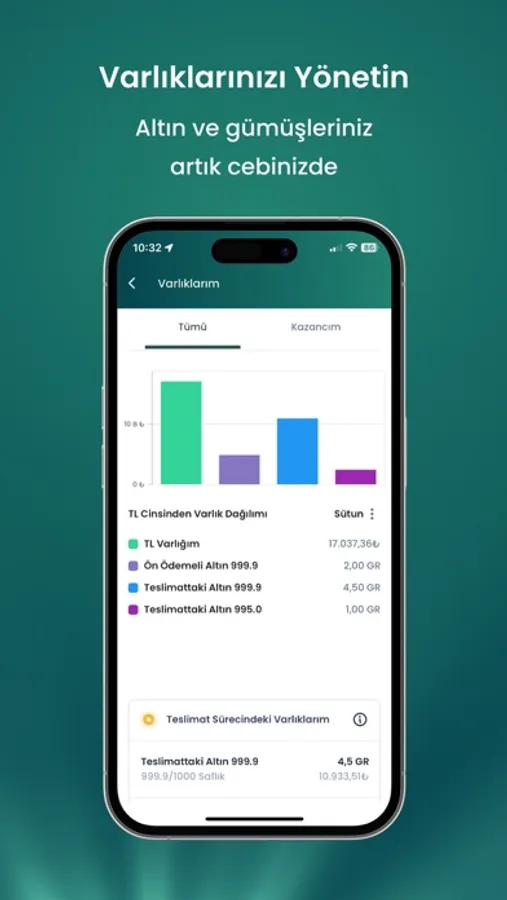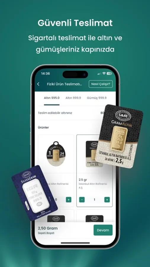 Kolay Alım Satım: Basit arayüzü sayesinde hızlıca fiziki altın ve gümüş alım satımı yapın. Birkaç dokunuşla işlem yapmak hiç bu kadar kolay olmamıştı.