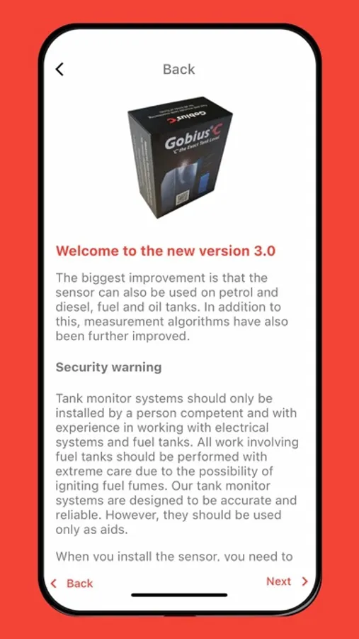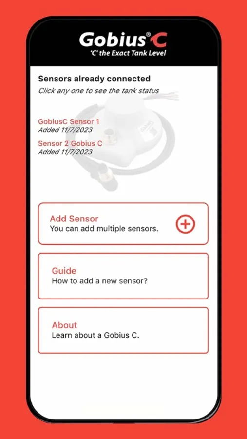 This app is designed to be used with the Gobius C sensor. The sensor is measuring sleeplessly from empty to full tank for all kinds of fluids. It gives you to volume in % and liters.