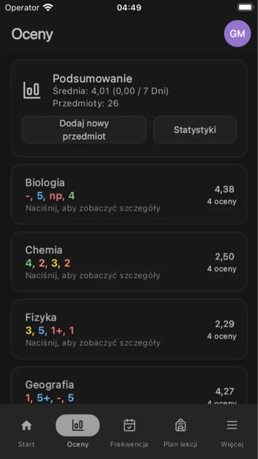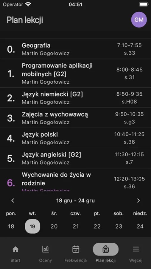 Była to nieoficjalna aplikacja do pobierania danych z dziennika.