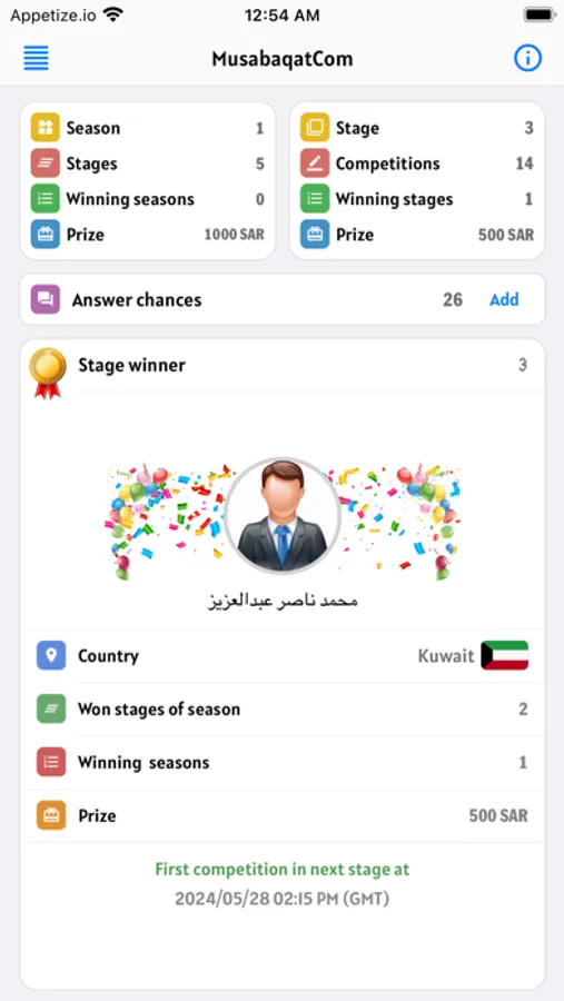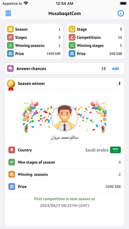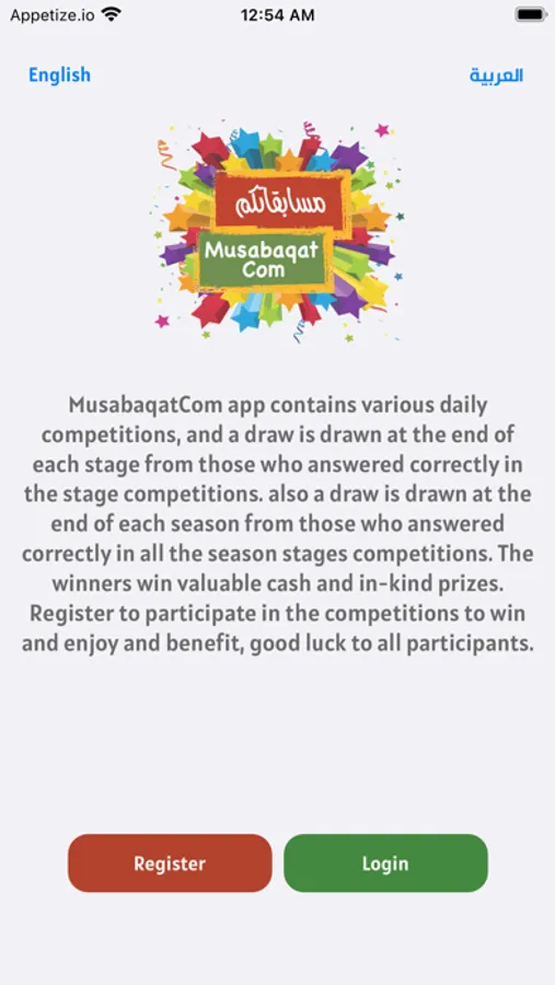 MusabaqatCom app contains various daily competitions, and a draw is drawn at the end of each stage from those who answered correctly in the stage competitions. also a draw is drawn at the end of each season from those who answered correctly in all the season stages competitions. The winners win valuable cash and in-kind prizes. Register to participate in the competitions to win and enjoy and benefit.