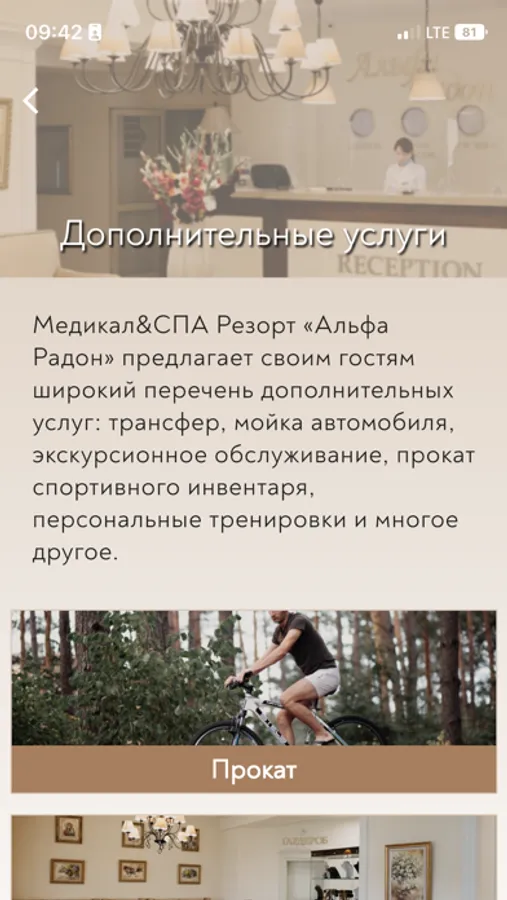 Мобильное приложение для гостей Medical & SPA resort «Альфа Радон» позволяет оперативно получать информацию об акциях и специальных предложениях, назначенных Вам консультациях врачей и процедурах, времени и месте проведения процедур, получать уведомления о предстоящих процедурах и изменениях в расписании.