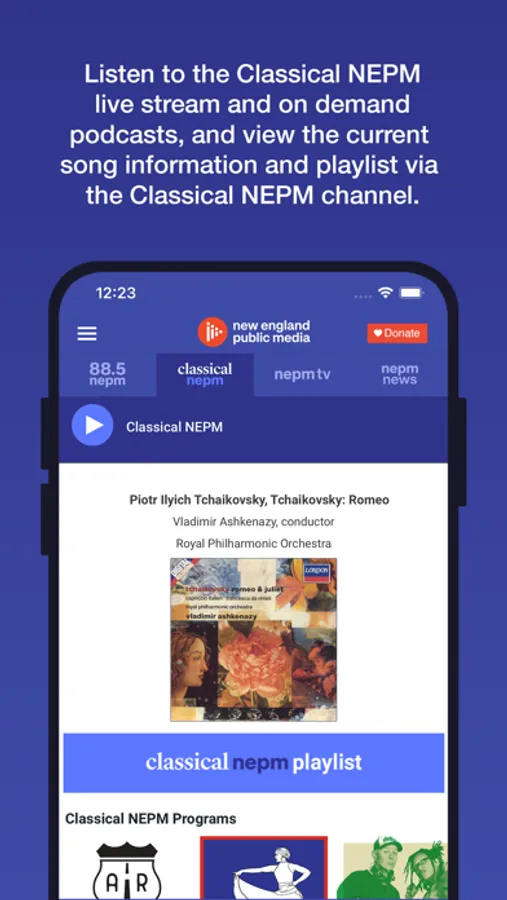 • Listen to livestreams from 88.5 NEPM and Classical NEPM even while traveling.