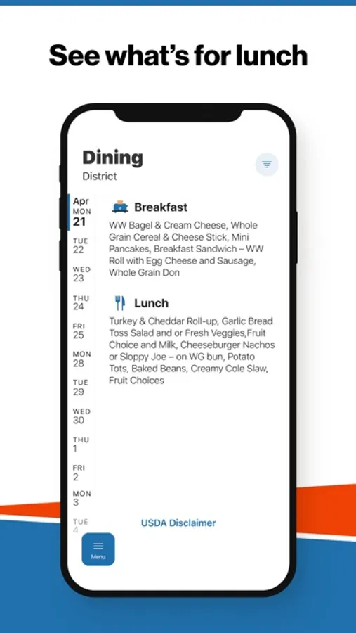 Within the dining section, you’ll find an easy to navigate, weekly menu, sorted by day and meal type.