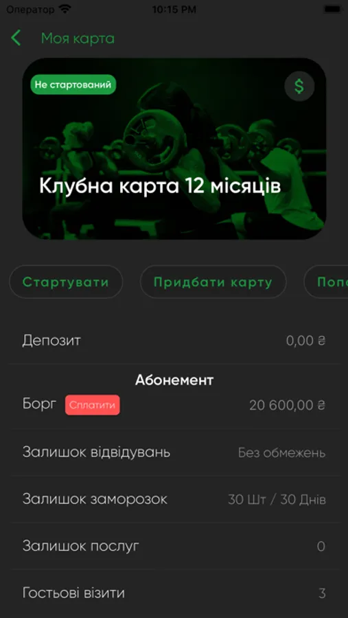 - подовжувати свою картку, та заморожувати її