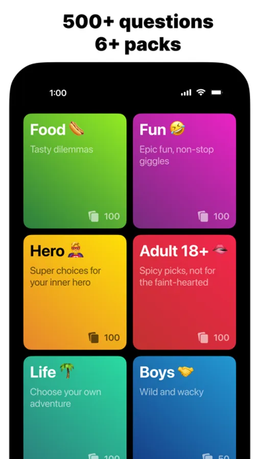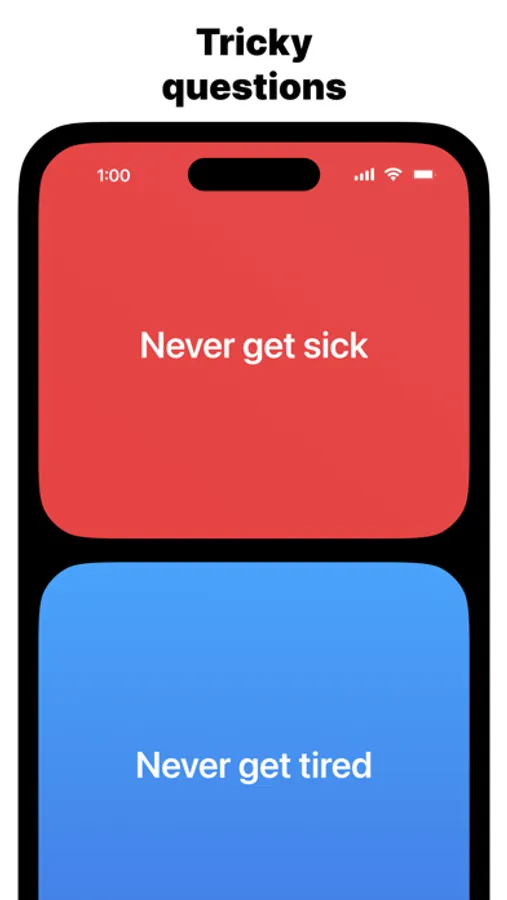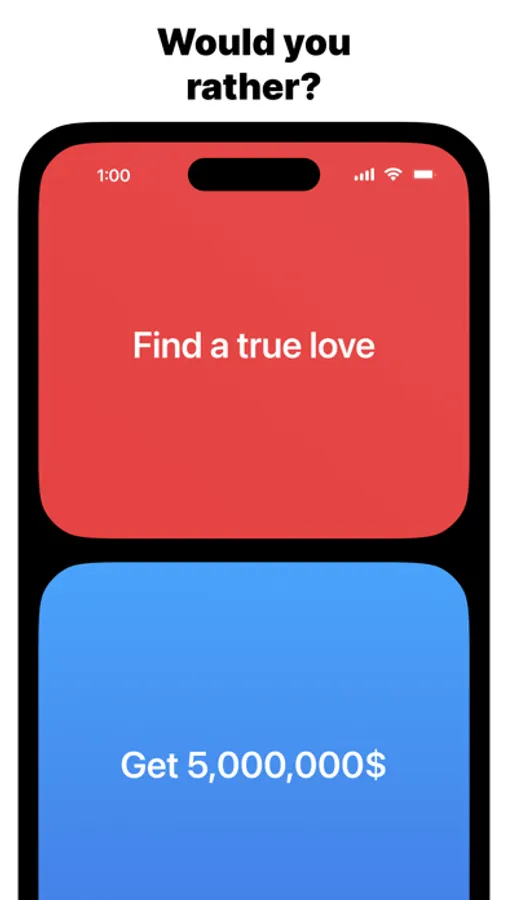 PickOne is a very fun party trivia game in the style of Would you rather, This or that, What would you choose, where you choose between two difficult options and have to decide which one you would prefer.