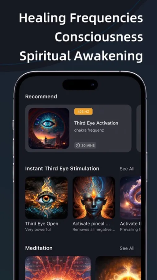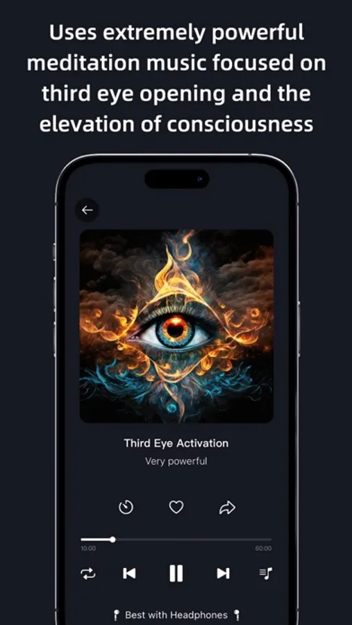 Third Eye uses extremely powerful meditation music focused on third eye opening and the elevation of consciousness. This is achieved through pineal gland stimulation using brainwave entrainment music. The result of elevated consciousness is an increase in our natural extrasensory abilities. With elevated consciousness, awareness, creativity, extrasensory perception, and intuition are all increased.