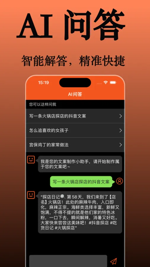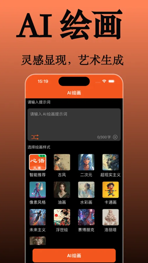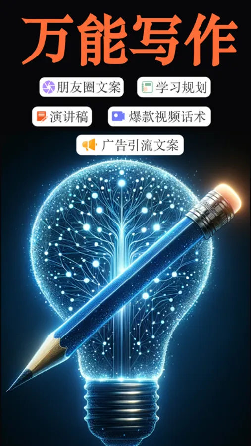 一款专业万能AI创作APP,您可以用来写文案、写作文、写小说、写诗词、写周报等等,也可以向AI问答解决您的各种难题,也可以AI绘画,创作自己喜欢的画作。主要包括以下功能: