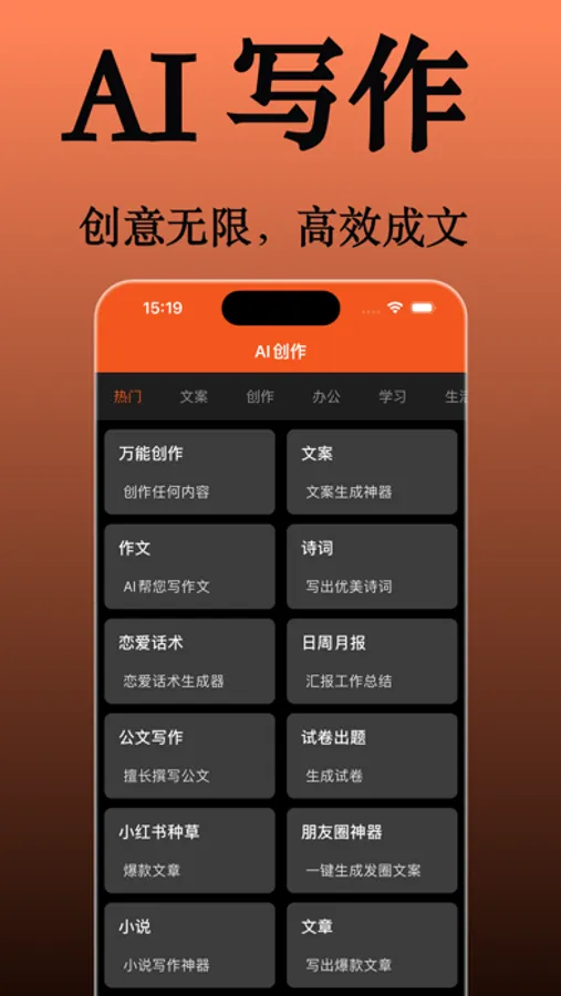 写文案、写作文、写脚本、写文章、写公文、写小说、写诗词、写周报,帮您写各种作品