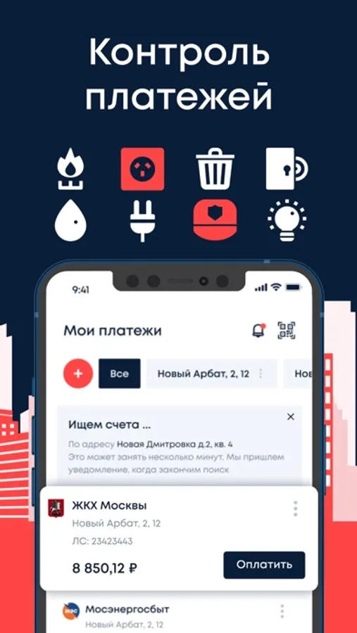 Мы создали приложение с интуитивно понятным и стильным интерфейсом, чтобы вы могли легко управлять вашими платежами и коммунальными услугами наших поставщиков ЕИРЦ Москвы и Мосэнергосбыт.