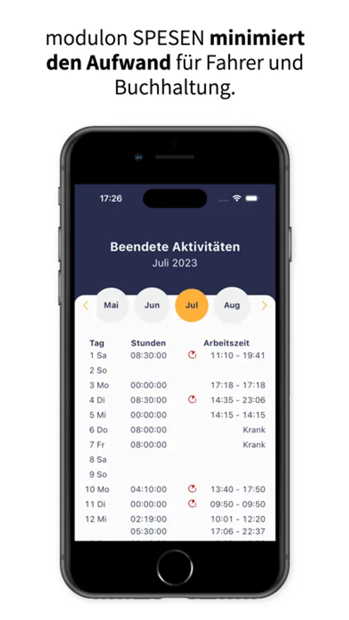 - Benutzerfreundliche Navigation und übersichtliche Darstellung Ihrer Zeiten.