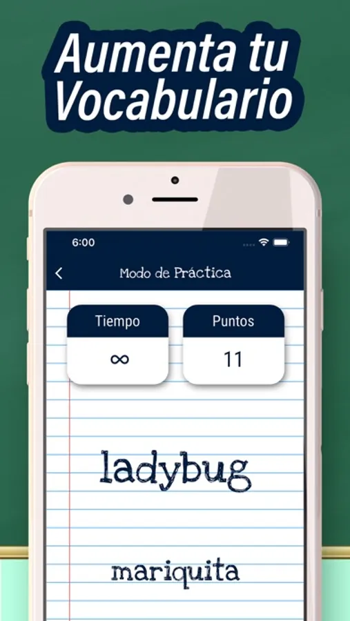 ¡Aumenta tu Ingles con esta simple app de vocabulario! Puedes juegar para ser uno de los 5 mejores genios del mundo en el modo competitiva, o puedes aprender tranquilamente a tu propio ritmo en el modo practica.