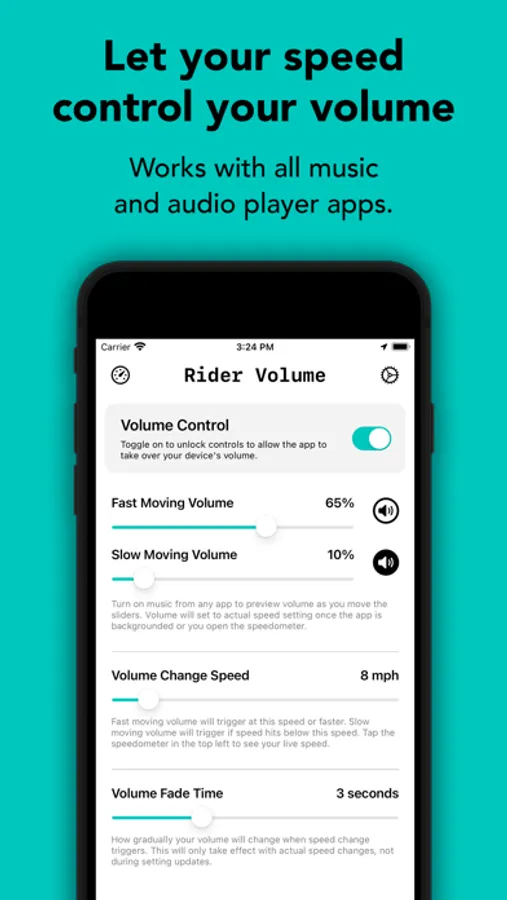 The app uses your GPS data to determine your physical speed and adjusts your device's output volume according to the speed trigger and volume levels you've configured.