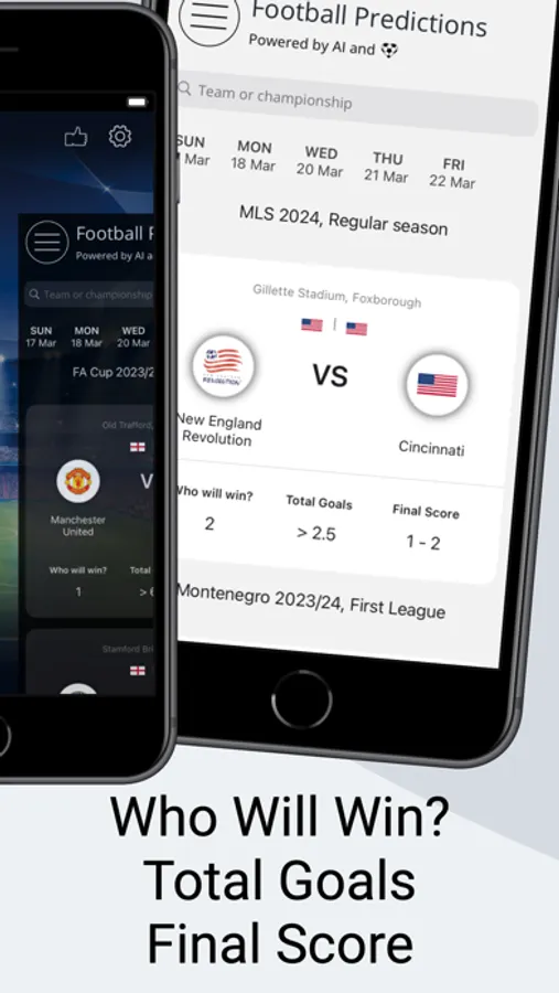 IMPORTANT: This app doesn’t belongs to betting and gambling, and does not simulate it in any manner. It should be used only as an application for having fun during watching football matches and seeing how AI can predict these matches!