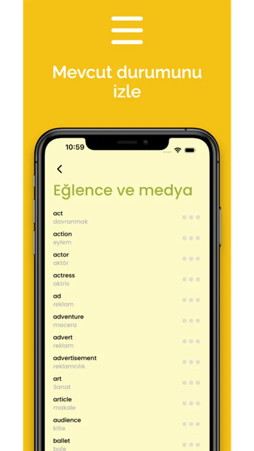 Artık İngilizce öğrenmek daha eğlenceli, kolay ve etkili! Mobil uygulamamızı indirin ve kendi hızınızda İngilizce öğrenmeye başlayın. İngilizceyi daha önce hiç olmadığı kadar kolay ve erişilebilir bir şekilde öğrenin. Eğer YÖKDİL veya TOEFL sınavlarına hazıırlanıyorsanız, bu uygulama ile İngilizce kelime haznenizi genişleterek sınavlara daha iyi bir şekilde hazırlanabilirsiniz.