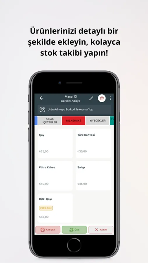 * Kolay Sipariş Yönetimi: Masa, paket servis ve gel-al siparişlerinizi hızla alın ve yönetin.