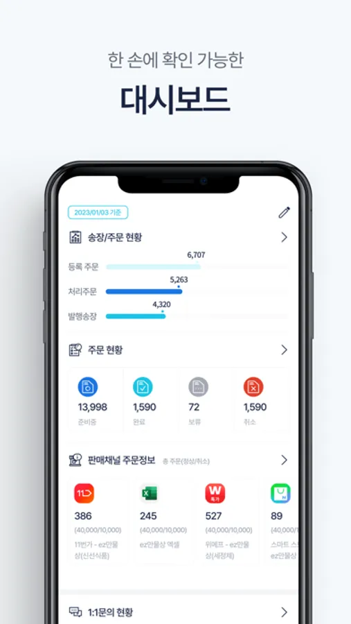 - 대시보드를 통한 주문 처리 현황을 한 눈에 확인하실 수 있습니다.