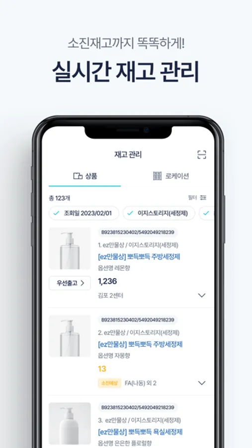 - QR코드/바코드를 이용하여 송장이나 상품재고 등 간편한 확인이 가능합니다.