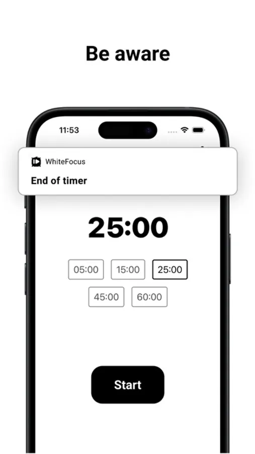 WhiteFocus is a very simple and minimalistic timer application aimed at maintaining your focus during concentrated tasks.
