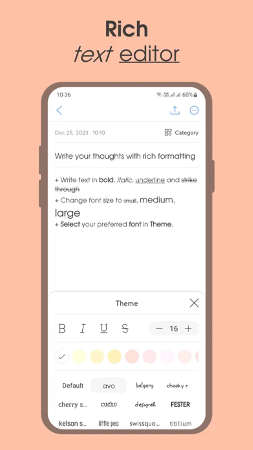 - Customize notes with a variety of fonts, typography, and font sizes.