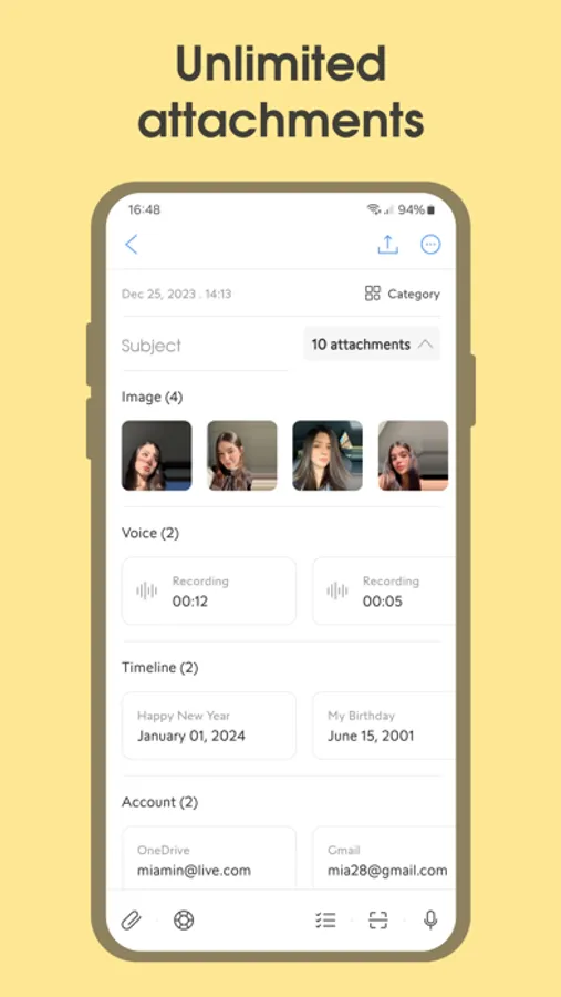 - Attach files to your notes.
