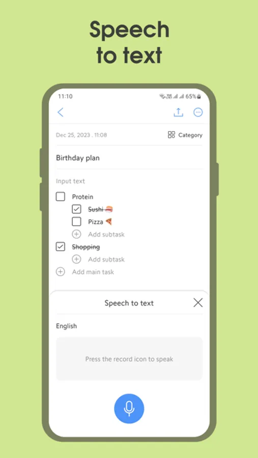 - Speech to text: Convert voice to text so you don't have to write by hand.
