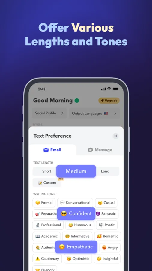 • Personalized emails: Customizable templates cater to various themes - business, education, personal, and more. Get email examples and samples for job applications, reminders, out-of-office replies, introductions, promotions, and sales.