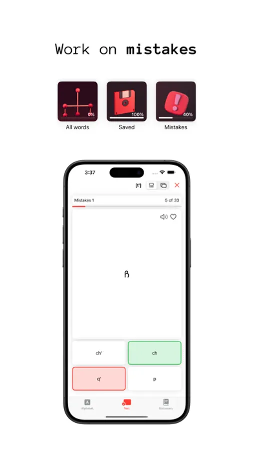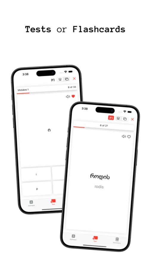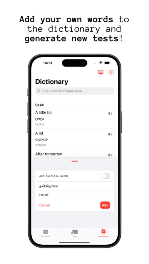 • Interactive Alphabet - This section allows you to learn letters by listening to their pronunciation. Add the alphabet widget to your device’s screen to learn at any convenient time.