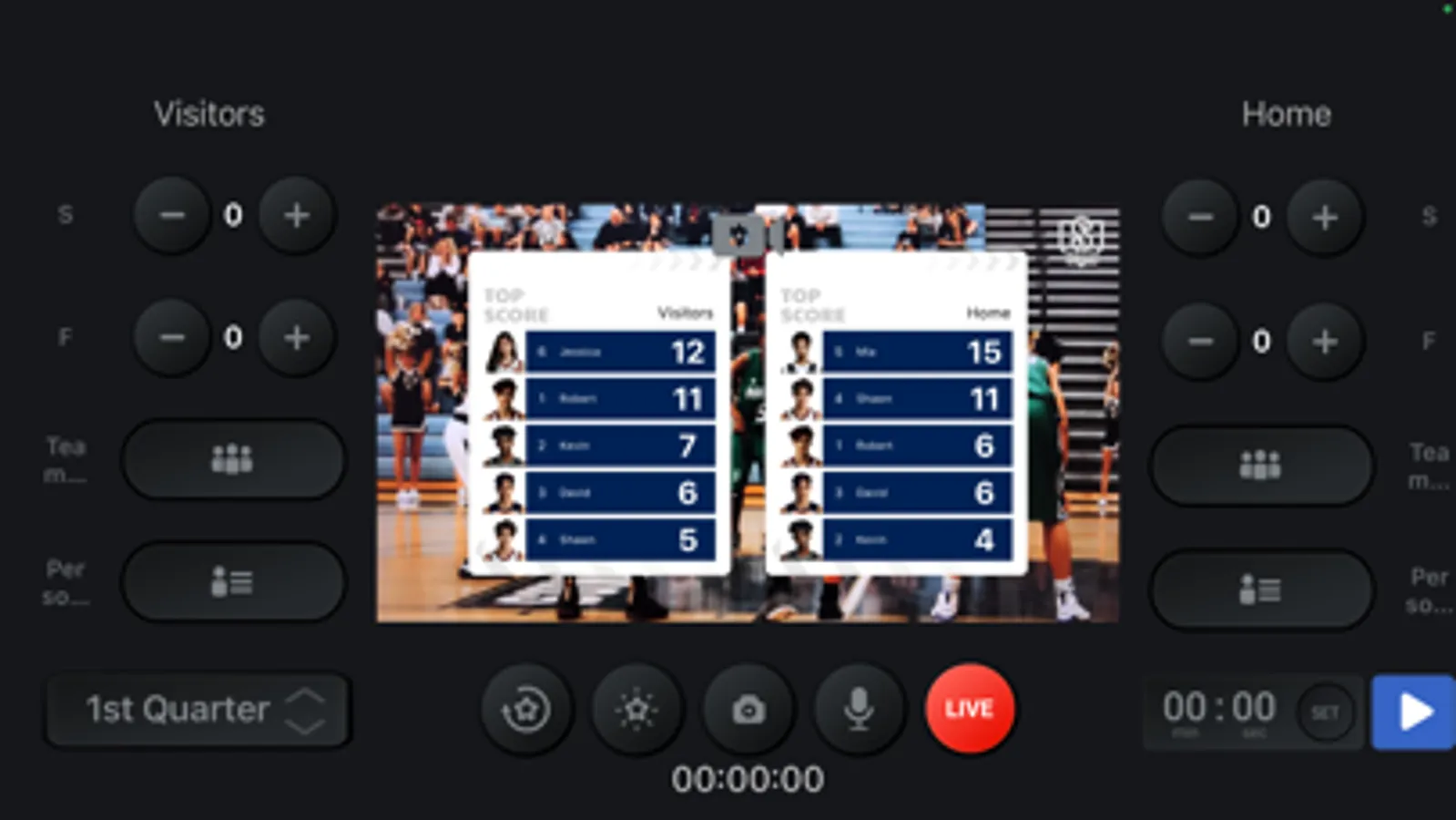 ScoreLive Basketball is a live streaming app designed for basketball-loving parents, offering a complete scoreboard to keep viewers up to date with the game. We’ve designed custom info cards that mirror the style of TV sports channels, allowing you to upload logos, create title cards, and display full-screen graphics effortlessly. With ScoreLive Basketball, you can easily set up starting lineups and charts during your live broadcasts. Plus, you can capture exciting highlights and replays, while our exclusive mute function lets you express yourself freely during breaks.