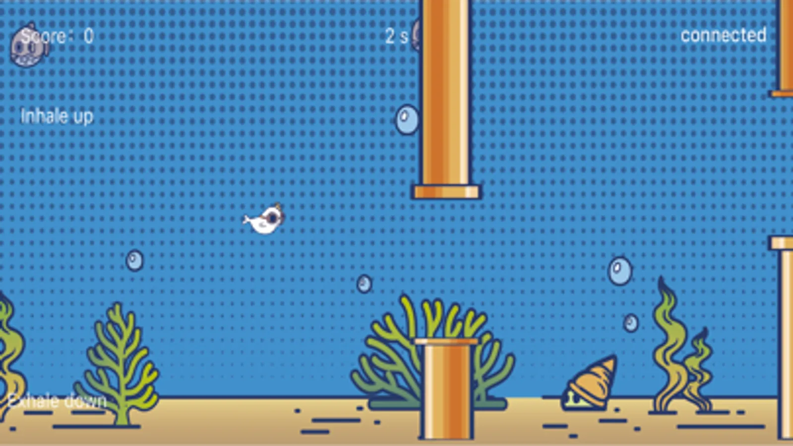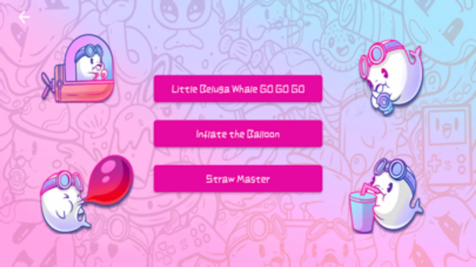 Game 1 Little Beluga Whale GO GO GO: Use the respiratory muscle trainer to inhale and exhale, making the beluga whale move up and down to navigate through obstacles.