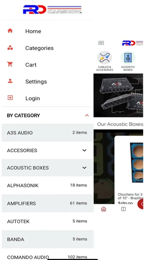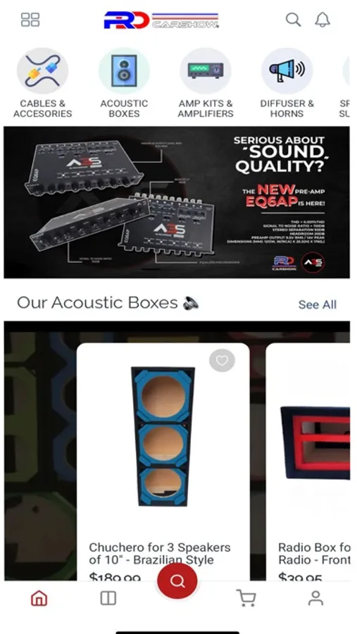 The RDCARSHOW app allows you to create an account or use your previously created account on our web store to access the entire catalog of products we offer! Discover speakers, tweeters, drivers, subwoofers, marine audio, amplifiers, accessories, and more...