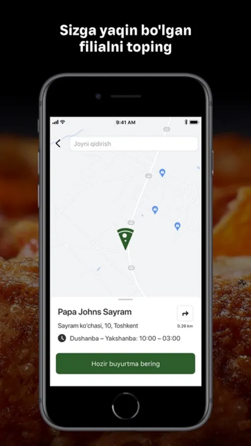 Biz buyurtma berishni yanada osonlashtirdik! Yangi rasmiy Papa Johns Pizza ilovasini yuklab oling va yetkazib berish yoki olib ketish uchun sevimli pitsa, qo'shimchalari va ichimliklarga buyurtma bering. Tushlik qilmoqchimisiz? Muammosiz! Onlayn buyurtma bering va O'zbekistondagi pitseriyalarimizdan birida ovqatlaning.