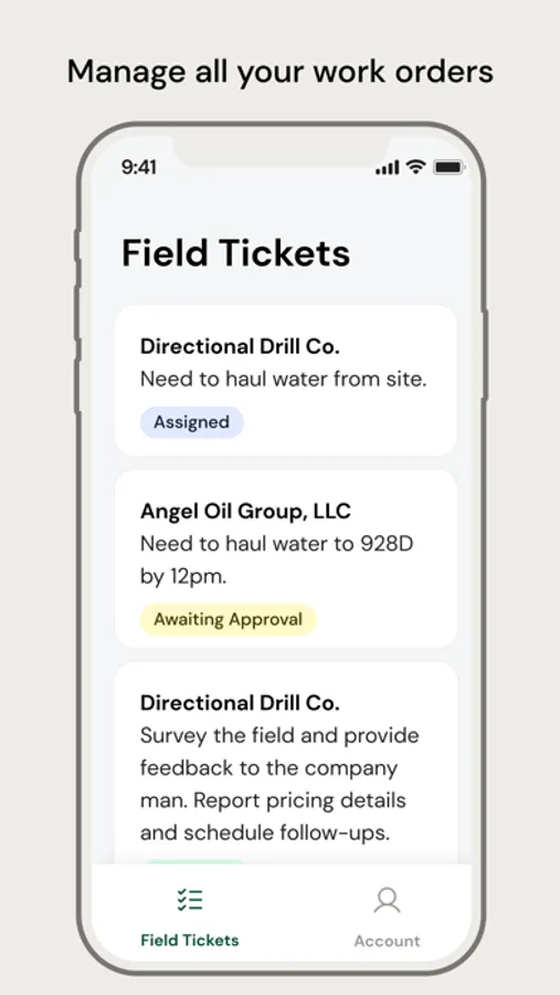 We’ll let you know when field tickets are approved. You can view your work history any time by reviewing all tickets you’ve been assigned.