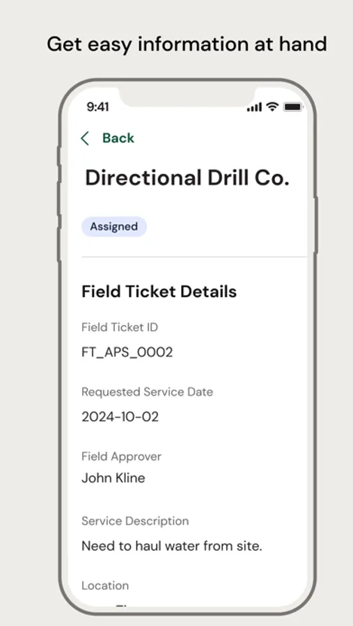 Tap into assigned tickets for more information. Once the field ticket is complete, submit it along with any supporting documents. And if there are any issues, you’ll see why a submission is rejected with a note from the client. Good news is, resubmission is easy.