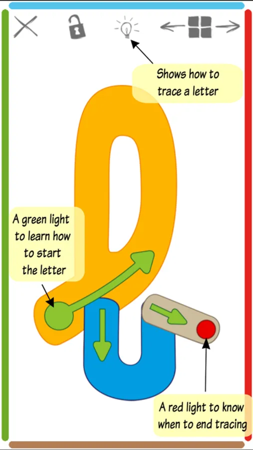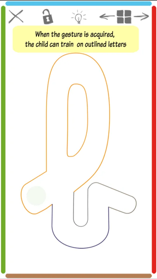 The drawing direction is checked by the app. While the drawing is not done correctly, the child is corrected until he succeeds.