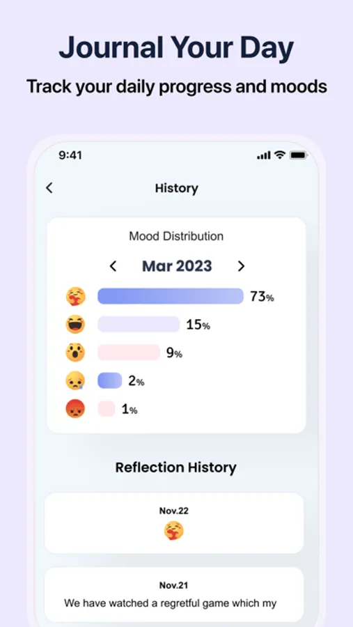 Сhoose your goal, receive daily habit tips, reflection check-ins, and motivation prompts to get the boost you need.