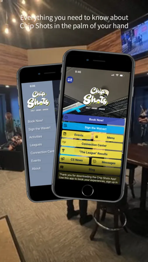The Chip Shots App is here! Use this app to book your experiences, sign up in our connection center, and receive instant push notifications with special offers and important information.
