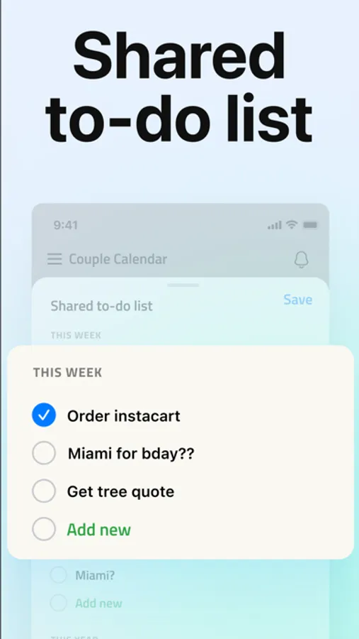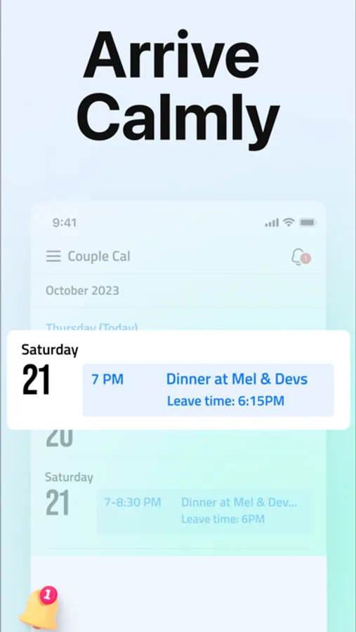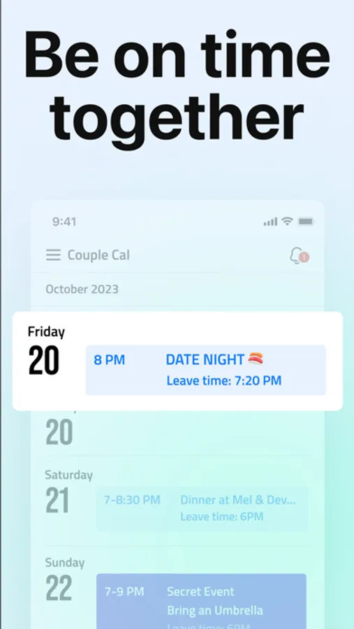 With together calendar you have a weekly schedule where you both see everything and both ALWAYS know what is going on.