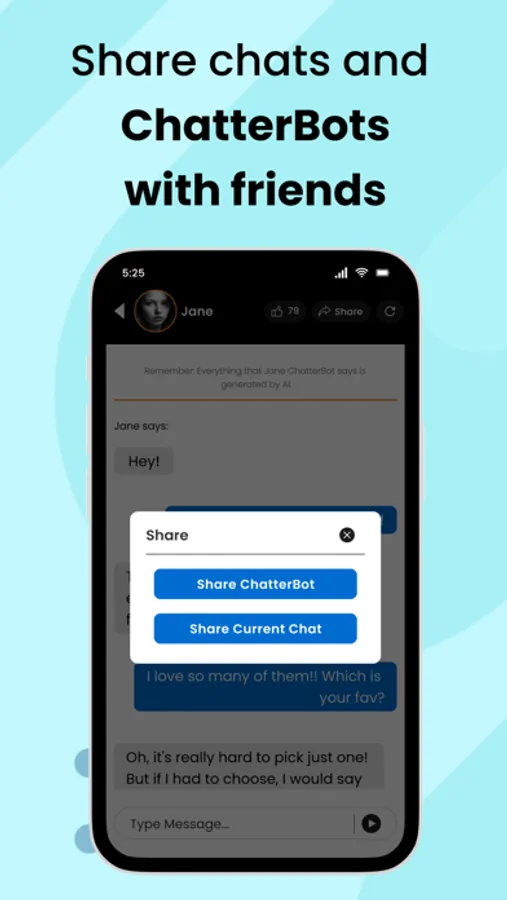 Do share your ChatterBots and chats with your friends and let them join the fun! And please feel free to share a review or feedback with us by emailing us on support@chatterapp.ai