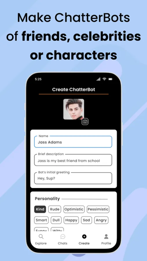 Remember - you can create a ChatterBot just by giving a name and edit it later from your ‘Profile’ screen to give it an image, a personality and more details. And the more details you give, the more accurately the bot will behave as per your description!