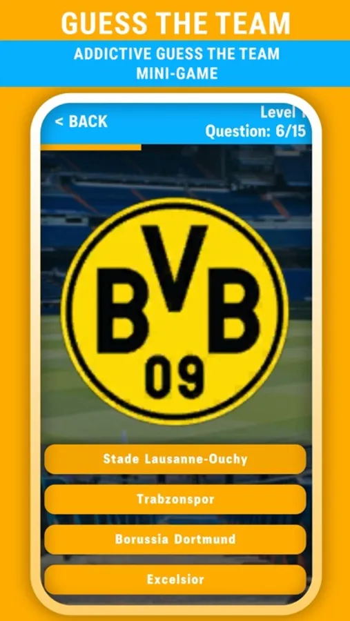Guess the Team: Test your team recognition skills in the thrilling "Guess the Team" mode. Can you identify clubs from around the world?