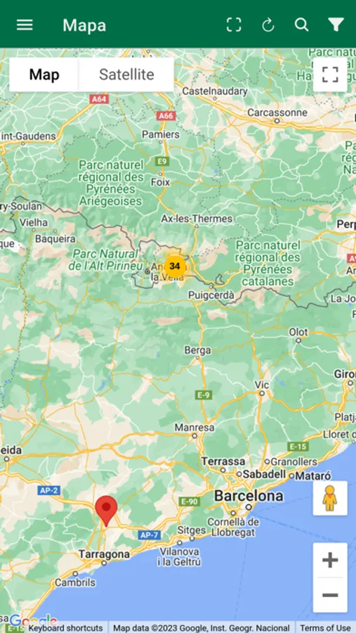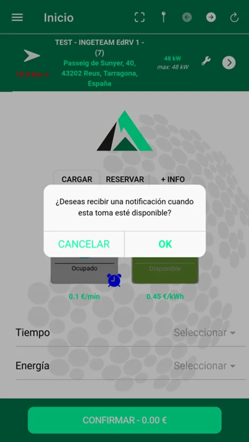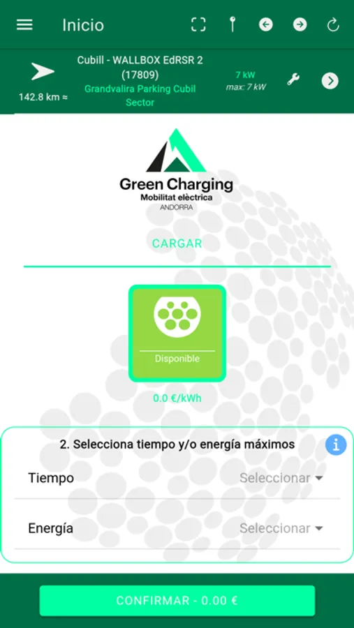 - Mapa: indica la posición en la que se encuentra el usuario y la de los cargadores.