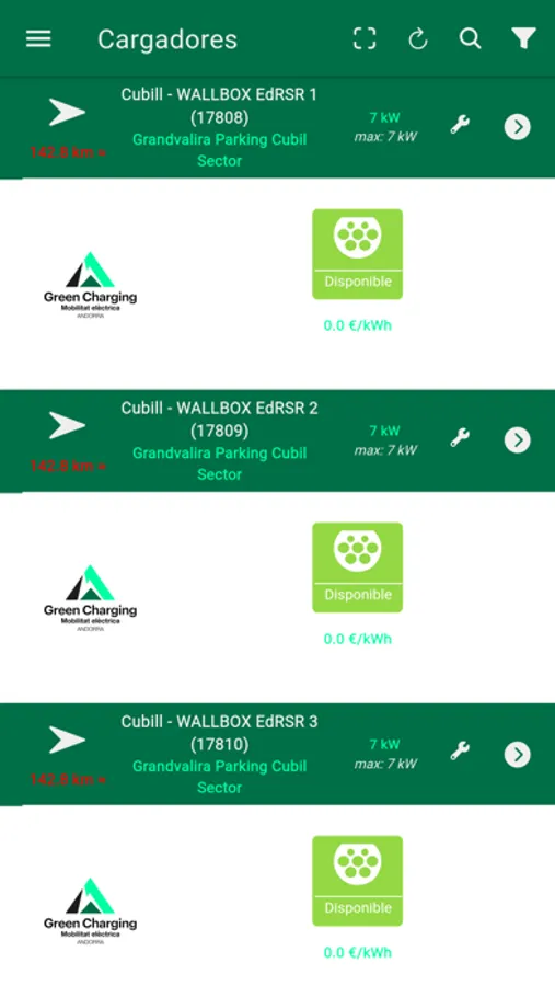 - Lista de cargadores: se muestra la información detallada de cada cargador.