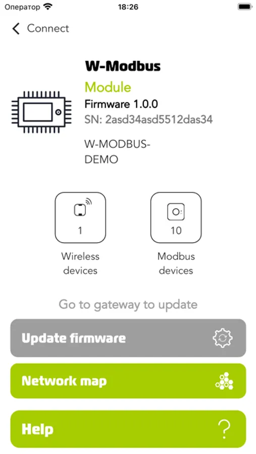 The W-Modbus app requires W-Modbus firmware 3.1.1 and above, which can be downloaded from the LumenRadio support webpage. Note that you need to install FW 3.1.1 or above on the gateway from the nRF connect app to enable the functionality. It is also required to have at least 3.0.0 or above on all nodes in the network. You will need to update all nodes individually if they are on version 2.2.3. This will be the last time this is required. All future updates can be done by either this app or from the nRF connect app.