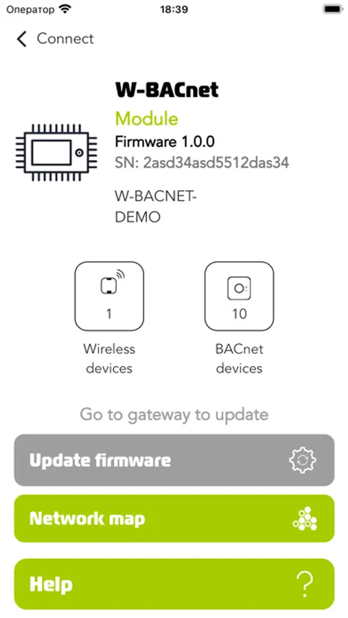 The W-BACnet app requires W-BACnet firmware 3.1.1 and above, which can be downloaded from the LumenRadio support webpage. Note that you need to install FW 3.1.1 or above on the gateway from the nRF connect app to enable the functionality. It is also required to have at least 3.0.0 or above on all nodes in the network. You will need to update all nodes individually if they are on version 2.2.3. This will be the last time this is required. All future updates can be done by either this app or from the nRF connect app.