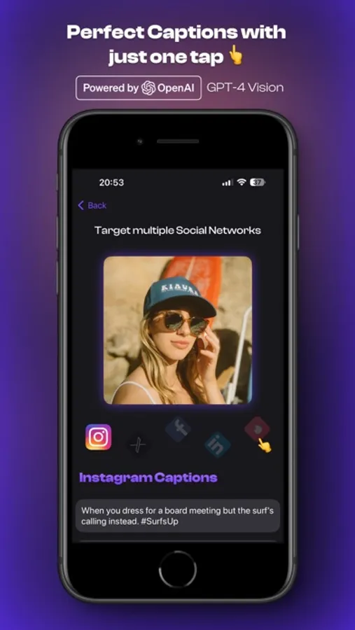 Do you often find yourself struggling to come up with the perfect caption for your social media posts? Whether it's Instagram, X, Facebook, LinkedIn or even Tinder, InstaCaption AI is here to revolutionize your posting experience. Our app, powered by the cutting-edge GPT-4 Vision technology from OpenAI, effortlessly crafts captions that capture the essence of your images and resonate with your audience.