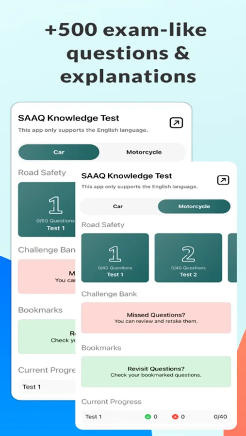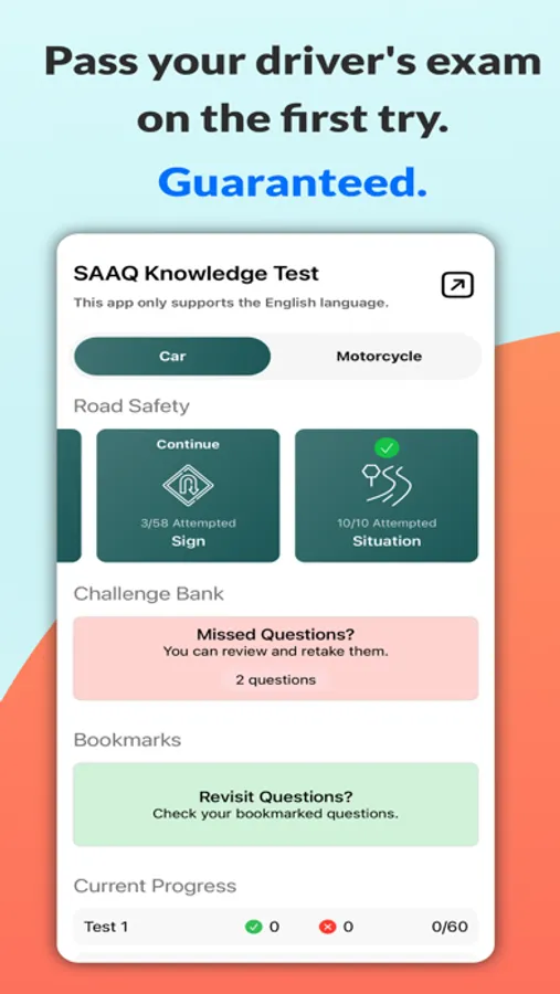 Download the app now and begin your journey toward passing your Examen Théorique SAAQ and Test SAAQ with confidence!
