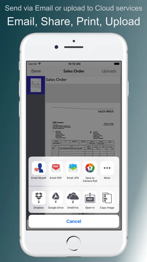 Quickly scan, store and email your documents as multipage PDF files. Upload to Dropbox, Google Drive and OneDrive and others.